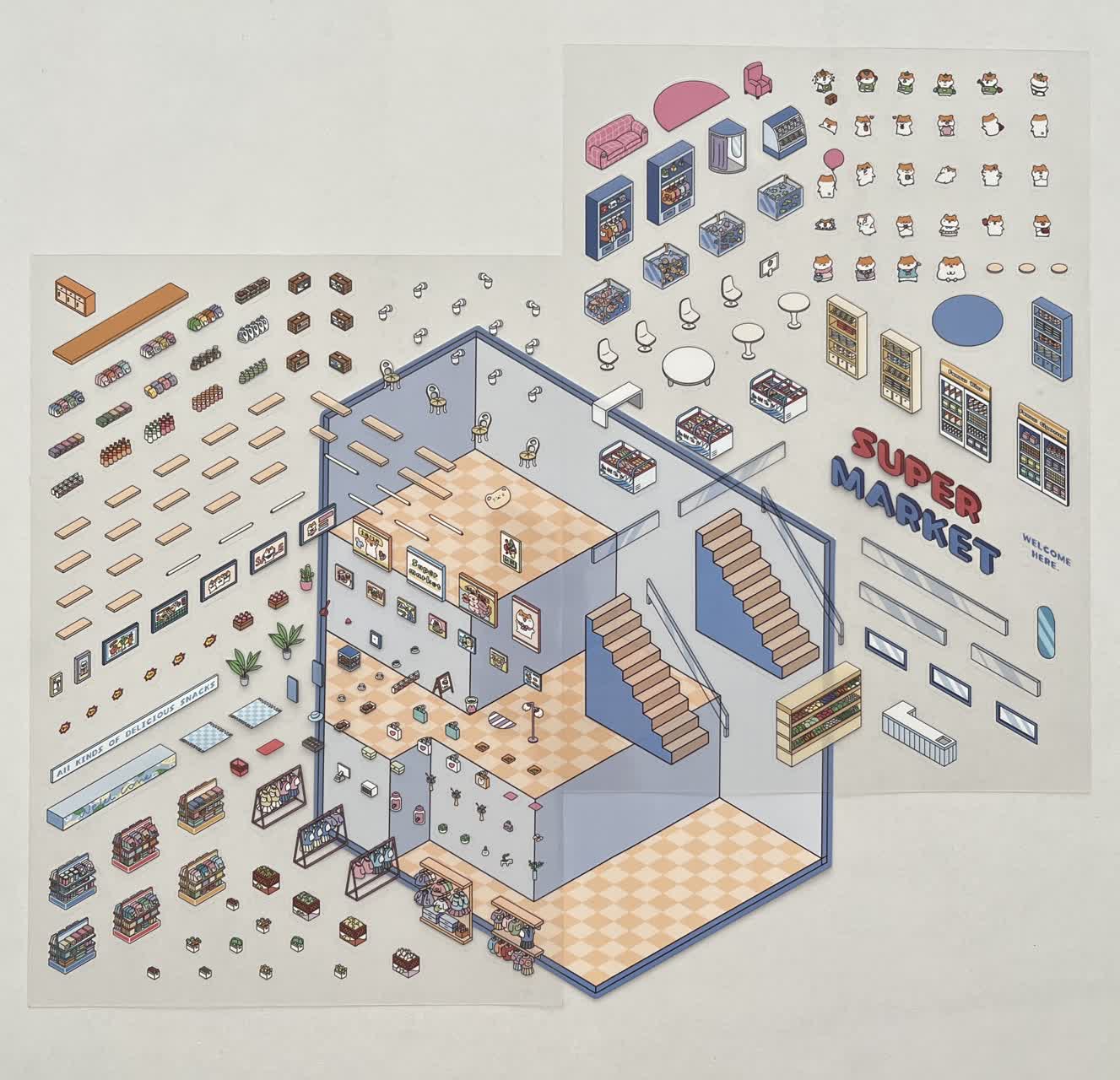 استیکرسه‌بعدی سوپر مارکت ۳طبقه